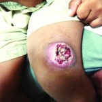 The nappy can rub haemangiomas in the nappy area, and contact with stools or urine makes the ulcer more painful. Wherever the haemangioma is located, an ulcer is painful, more likely to bleed, and more likely to become infected. In the long term, an ulcerated area is more likely to leave a scar than a non-ulcerated area of haemangioma.